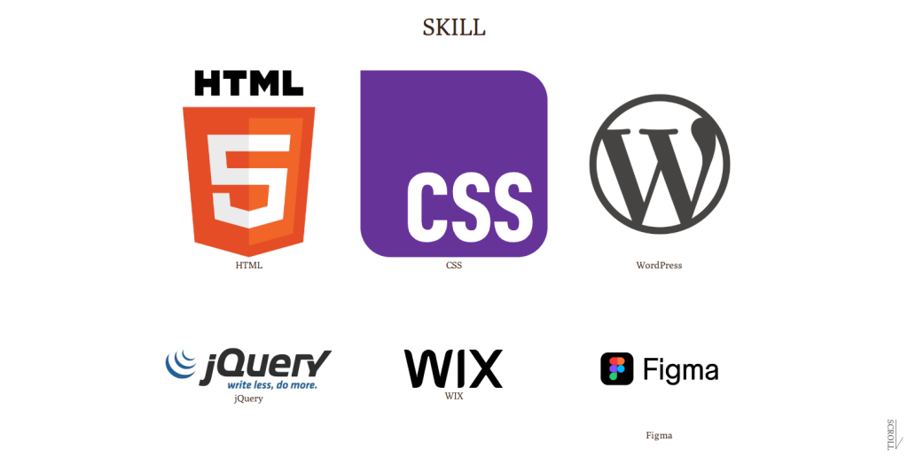 - コーディング→HTML、CSS、JavaScript、PHP